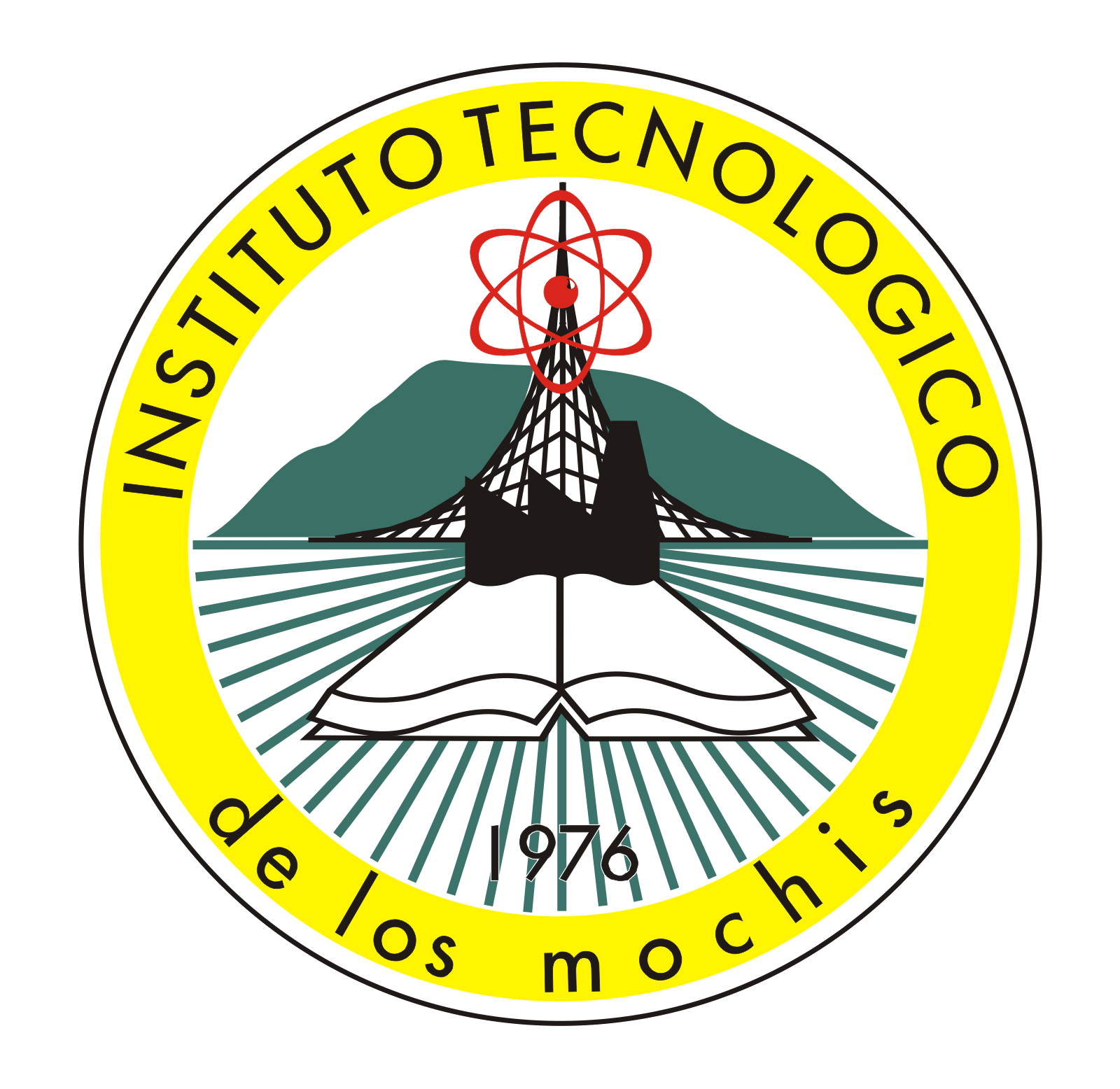 El Átomo: Los orbitales de un átomo simbolizando a la ciencia y la tecnología, el numero 1976, año en el cual inició su labor el Instituto Tecnológico de Los Mochis.